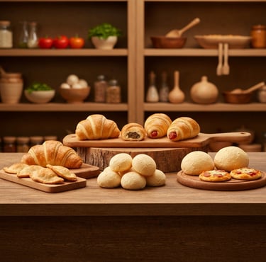 Massa fofinha, frita ou assada, com recheios generosos de calabresa, frango, presunto e queijo ou apenas queijo derretido.