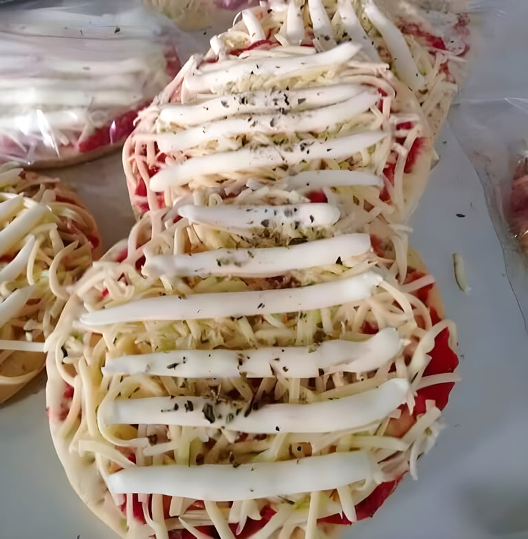 Praticidade e sabor com nossas mini pizzas de massa macia, disponíveis nos sabores clássicos: calabresa, frango, mussarela, portuguesa e dois queijos.